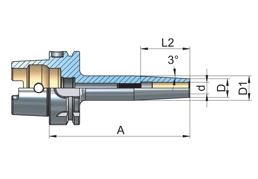 | Lämpökutisteistukka HSK-A63 Ø3 - 120 slim versio | A63.25.03.120.S | 120mm | 9mm |