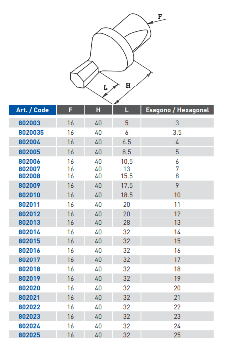- Kuusikulmio aventimet ø16mm TiN-pinnoitteella