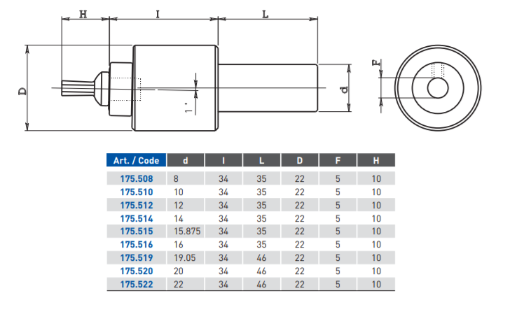 | Avennustyökalun runko INT.FISSO D.22 f.5 | CH 175522 | 22mm |